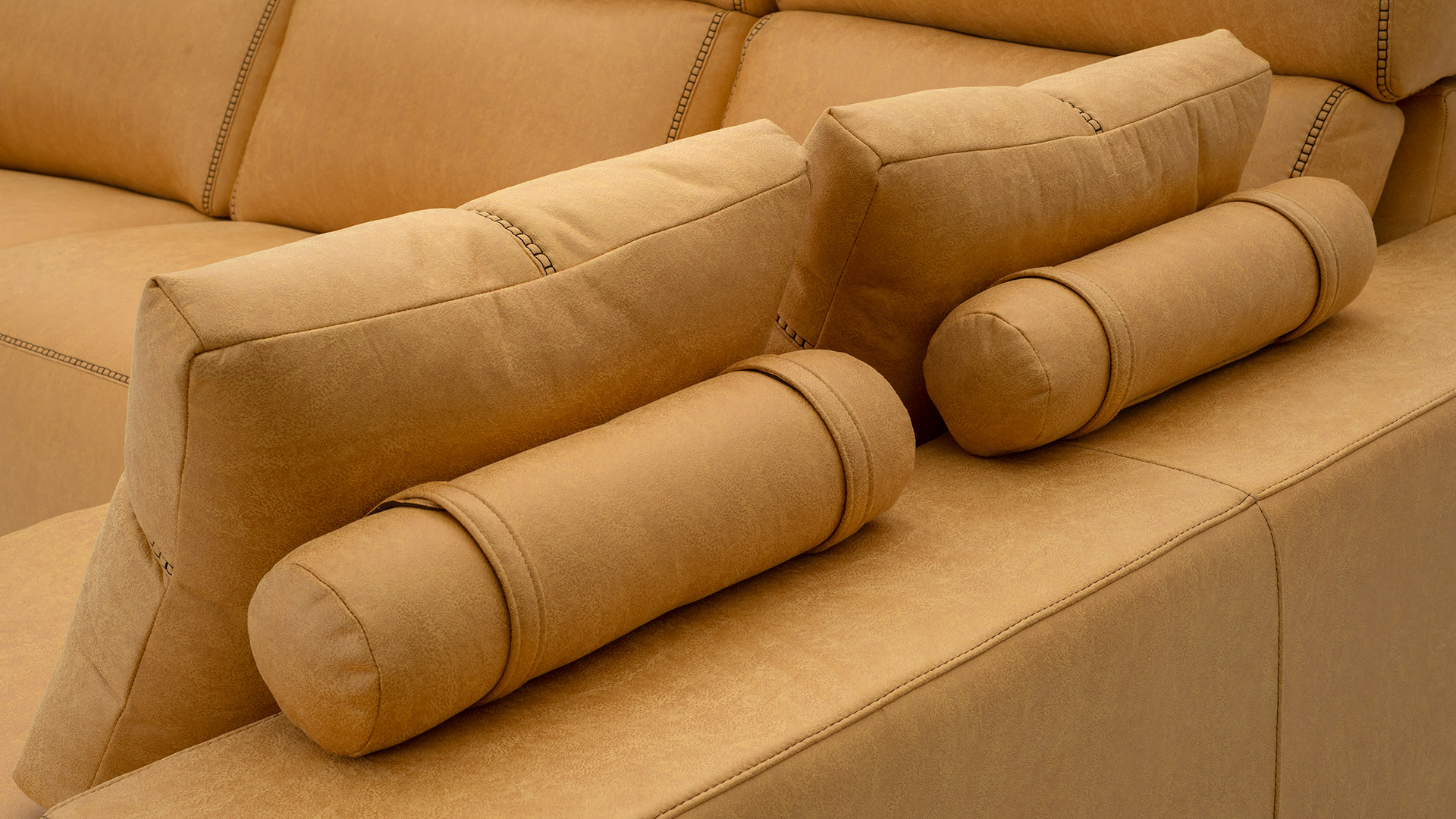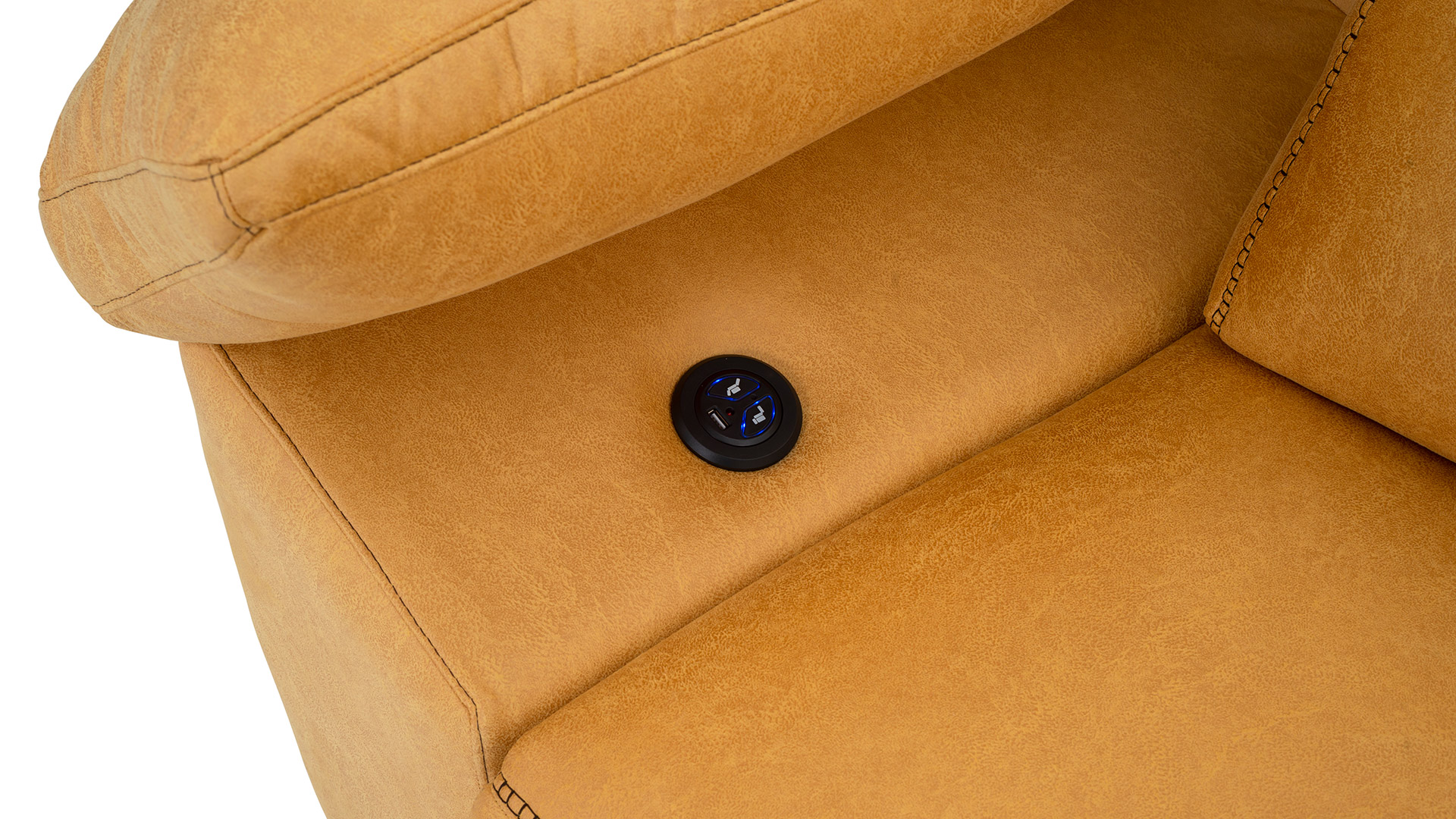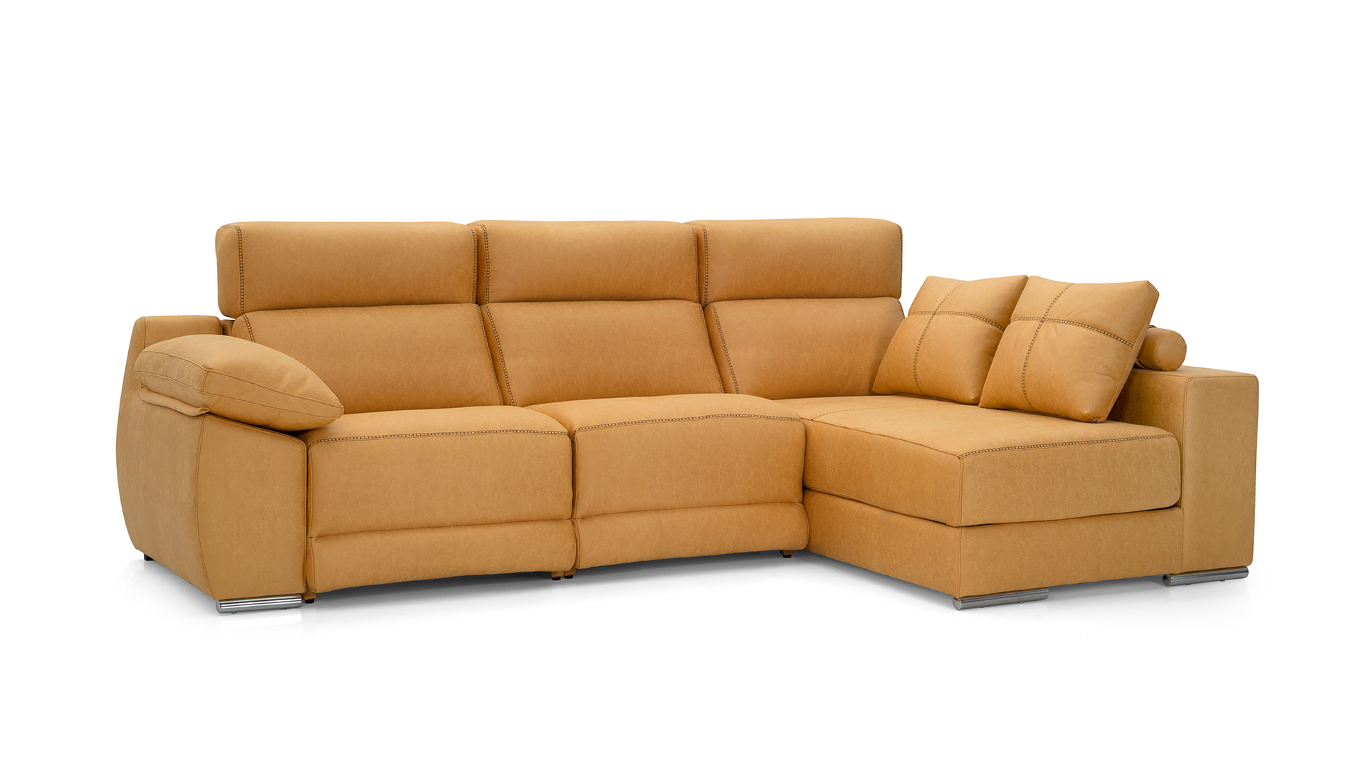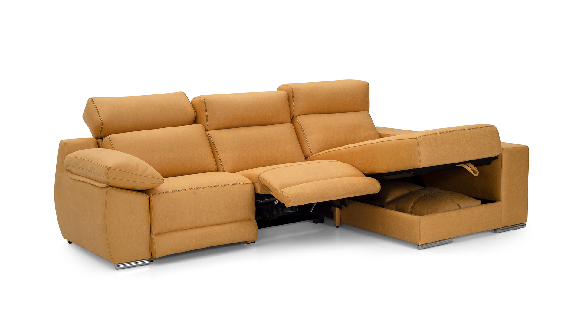 Asientos del módulo relax con motor, muelles zig-zag, rellenos de goma densidad 31 kg recubiertos de fibra siliconada.