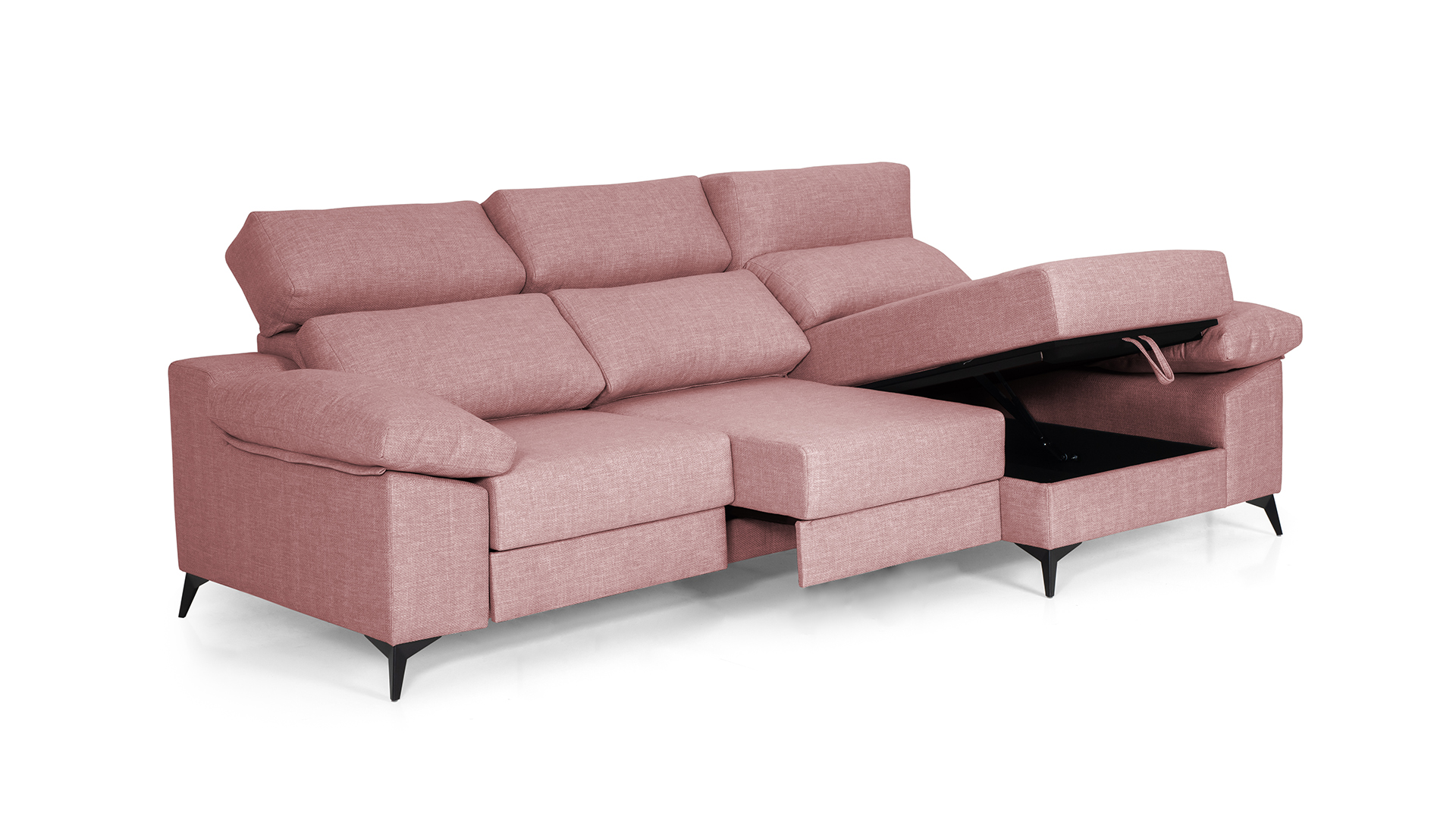 Asiento del chaise longue con arcón relleno de goma densidad 30 kg recubierto de fibra siliconada.