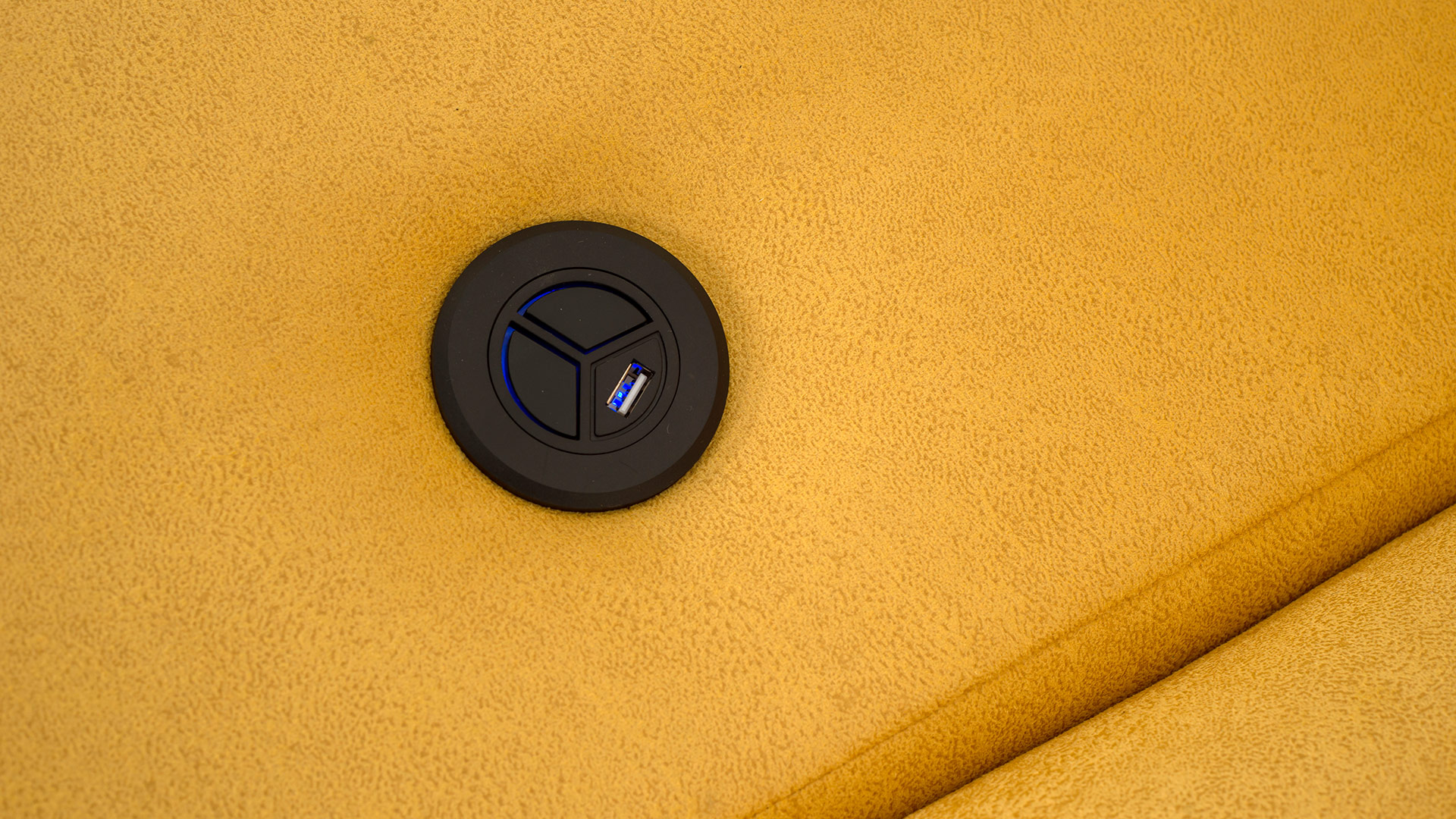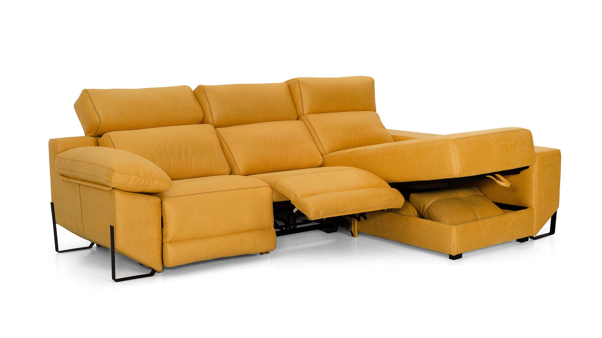 Asientos del módulo relax con motor, muelles zig-zag, rellenos de goma densidad 35 kg recubiertos de fibra siliconada.